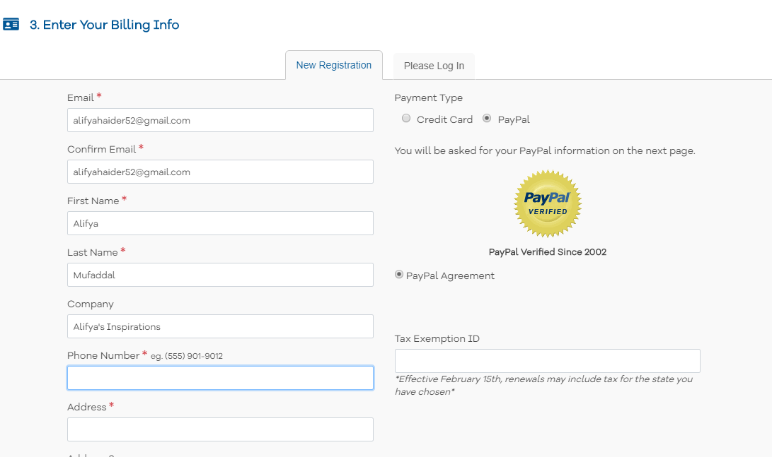 Now enter your Billing details. Like your Email address, Name, Phone number and your actual address and postcode. You can choose to pay directly with your credit card or via PayPal.